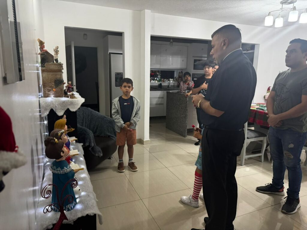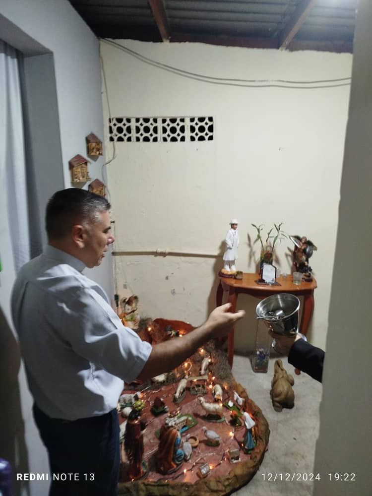 Nuestro Párroco Pbro Joel Escalante está recorriendo las comunidades parroquiales para bendecir los Pesebres de cada familia